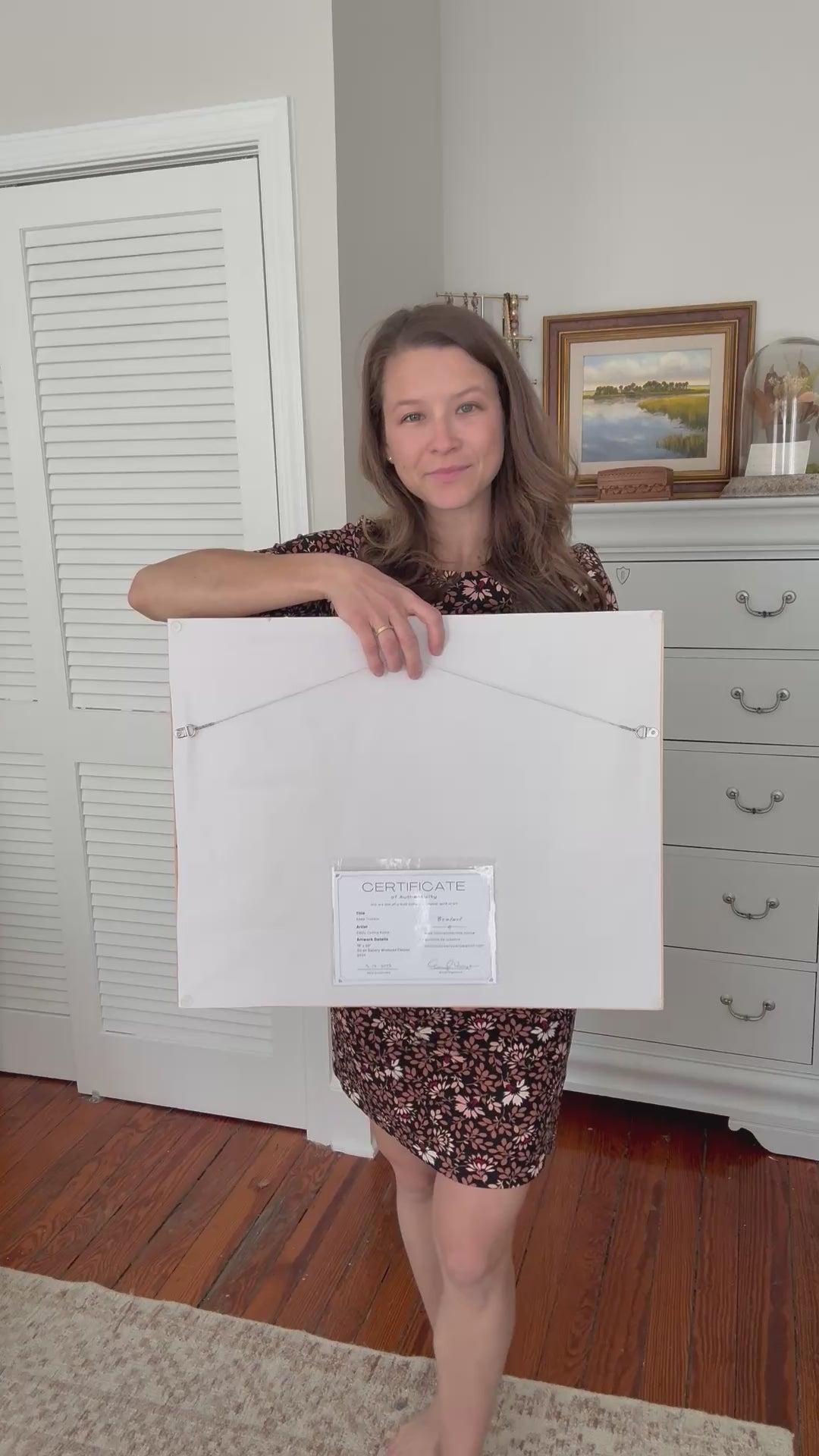 This is an original, acrylic painting on canvas signed by Emily and framed in a wooden floating frame. The painting is backed with a Certificate of Authenticity which includes the art description, contact information, and artist signature.
