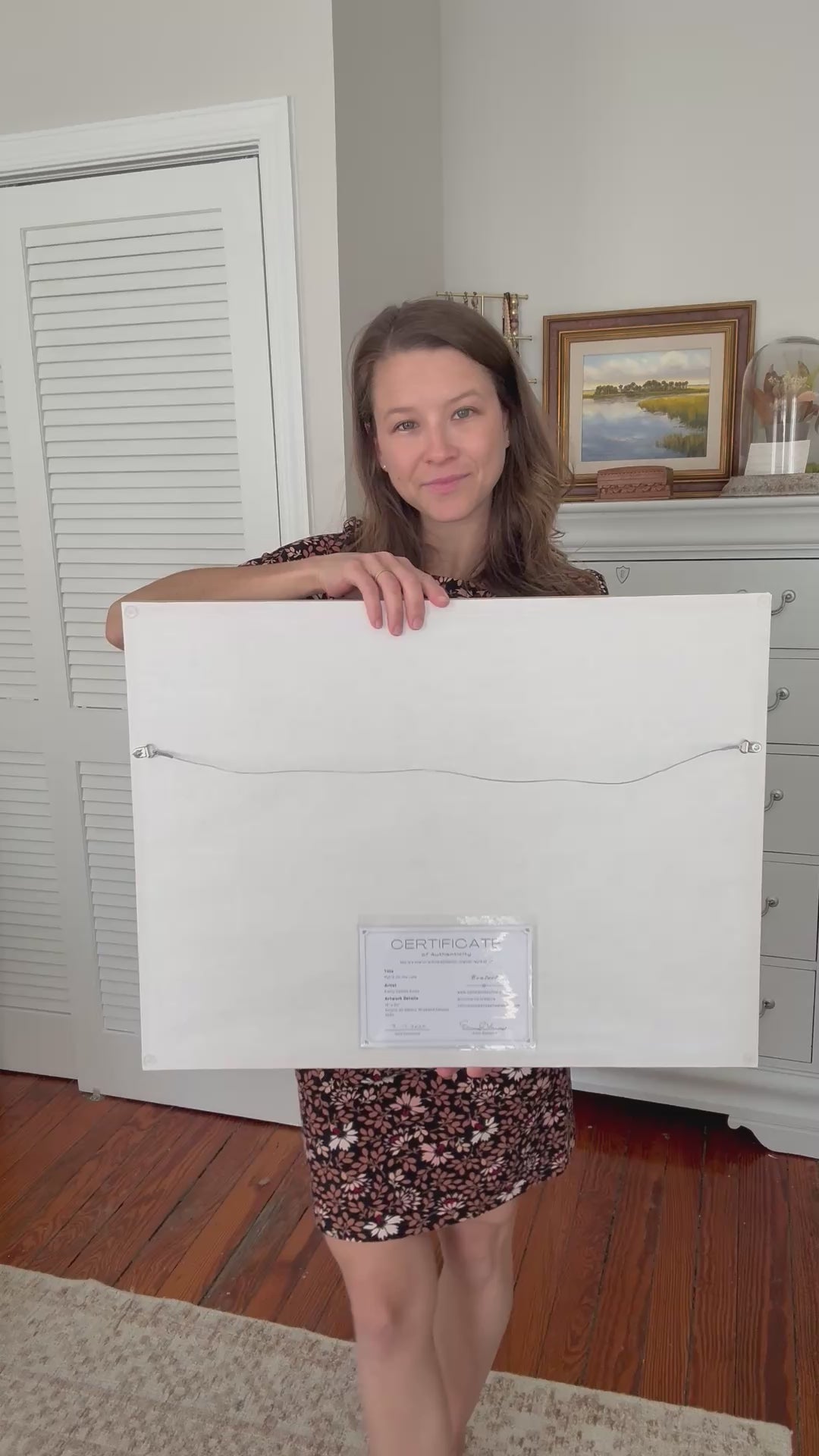 This is an original, acrylic painting on canvas signed by Emily and framed in a wooden floating frame. The painting is backed with a Certificate of Authenticity which includes the art description, contact information, and artist signature.