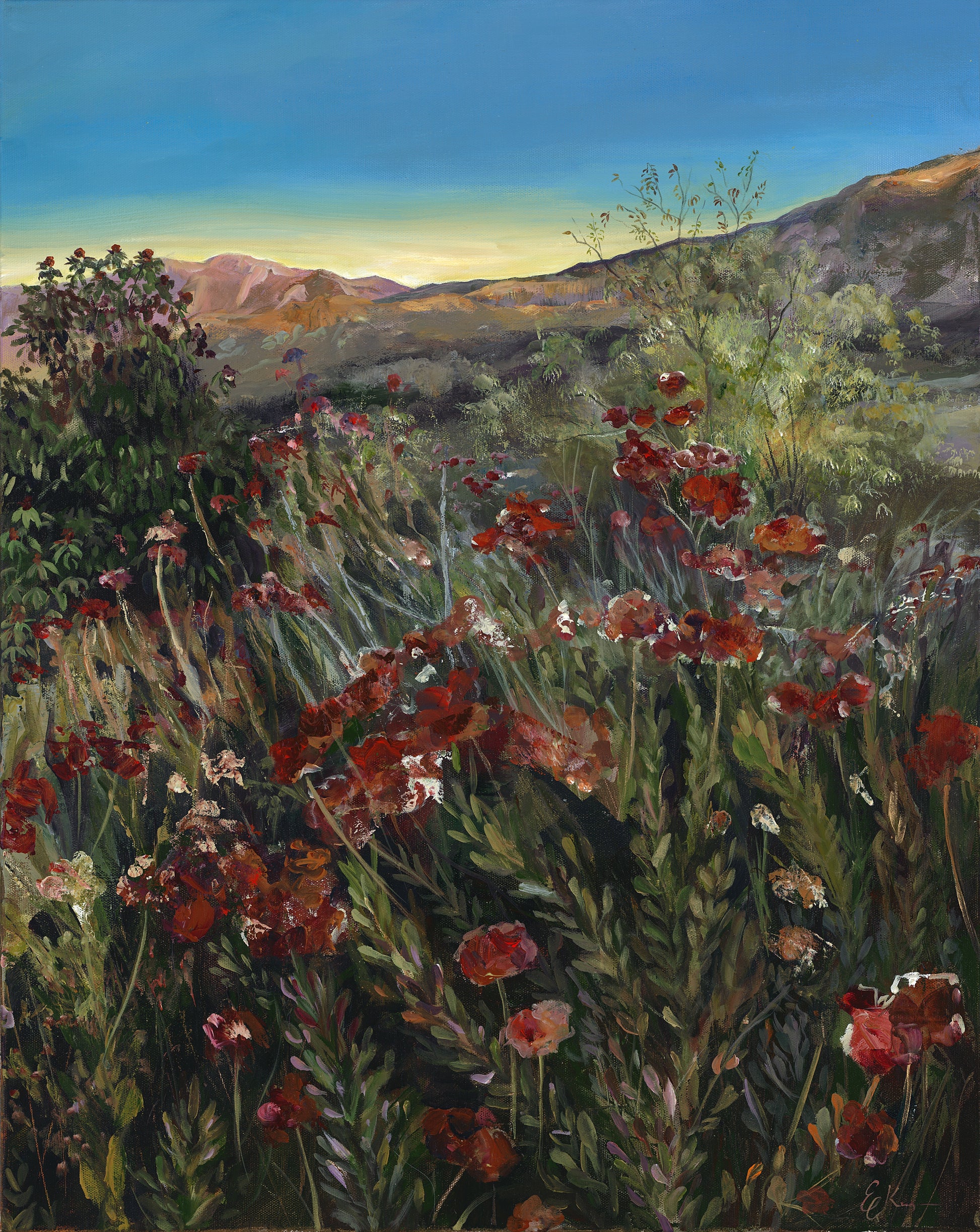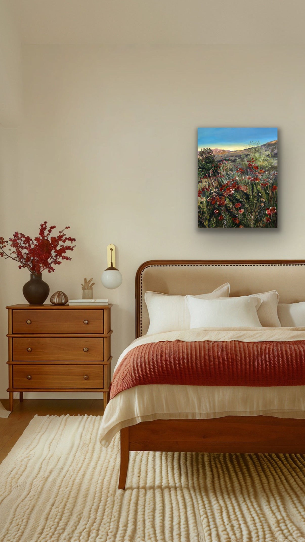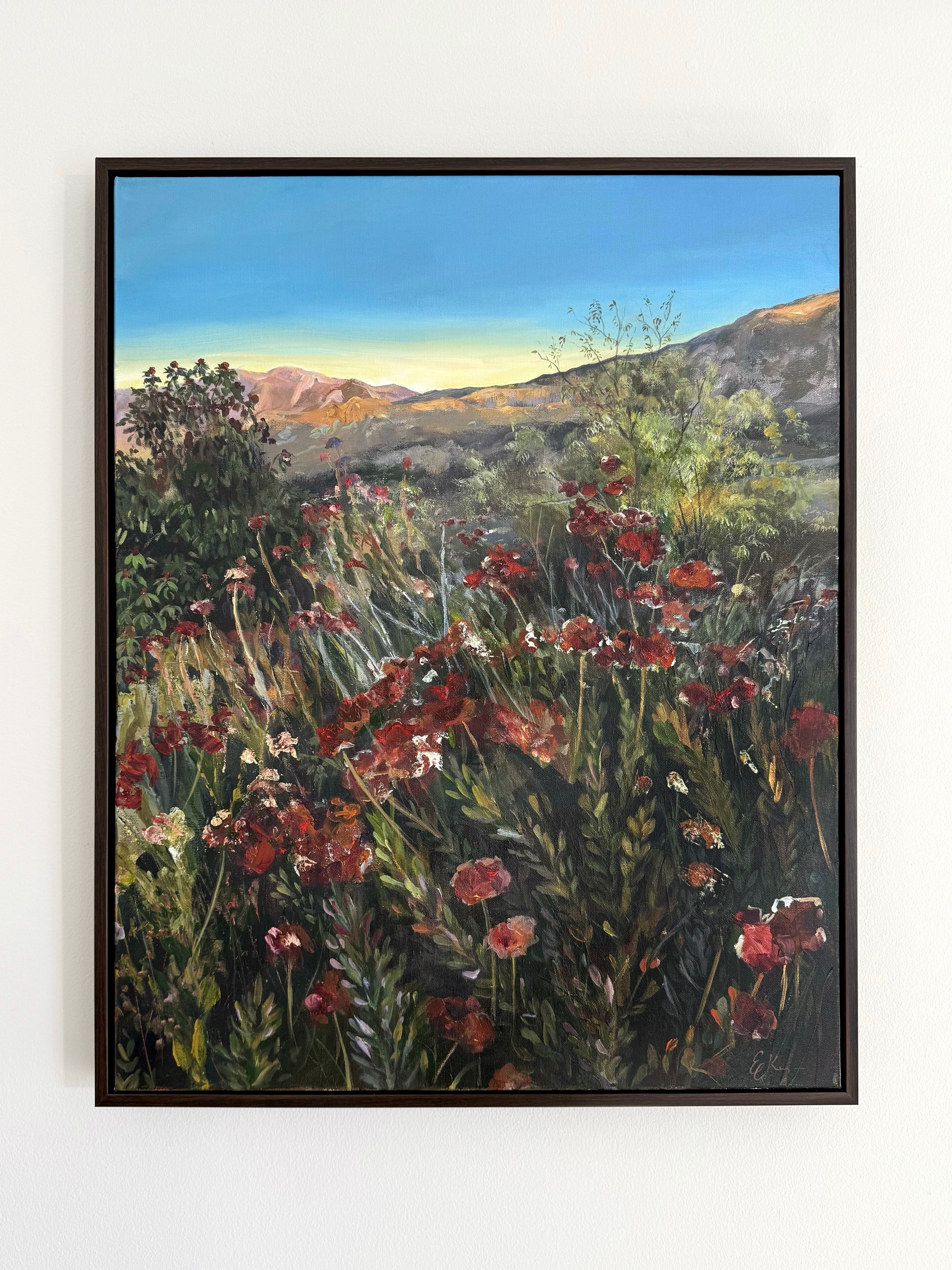 On a wellness retreat in Mexico, I paused at the base of the mountain before a hike to breath in the beauty of the wildflowers. Instead of being a visitor there, I felt as if I was one with my surrounding environment. Here, I discovered a sense of belonging that was not circumstantial. Instead, I felt a deep sense of knowing that I was uniquely and intentionally created. I hope that this painting or others can transfer to the viewer this feeling of belongingness, inspired by awe in nature.